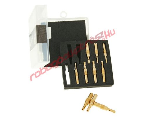 10 darabos M6 menetű Naraku alapjárati fúvóka szett, Keihin PWK és CVK porlasztókhoz.