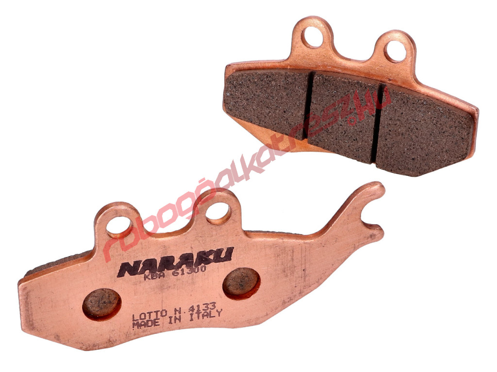 Naraku szinterezett fékbetétek robogókhoz és motorokhoz. Kiváló fékteljesítmény, pontos adagolhatóság, nagyon jó nedves fékezés, alacsony kopás és minimális csúszás még magas fékezési hőmérsékleten is. Ezek a fő jellemzői ennek a kiváló minőségű fékbetétnek.