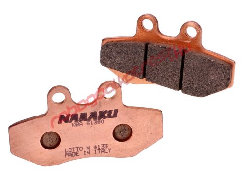Naraku szinterezett fékbetétek robogókhoz és motorokhoz. Kiváló fékteljesítmény, pontos adagolhatóság, nagyon jó nedves fékezés, alacsony kopás és minimális csúszás még magas fékezési hőmérsékleten is. Ezek a fő jellemzői ennek a kiváló minőségű fékbetétnek.